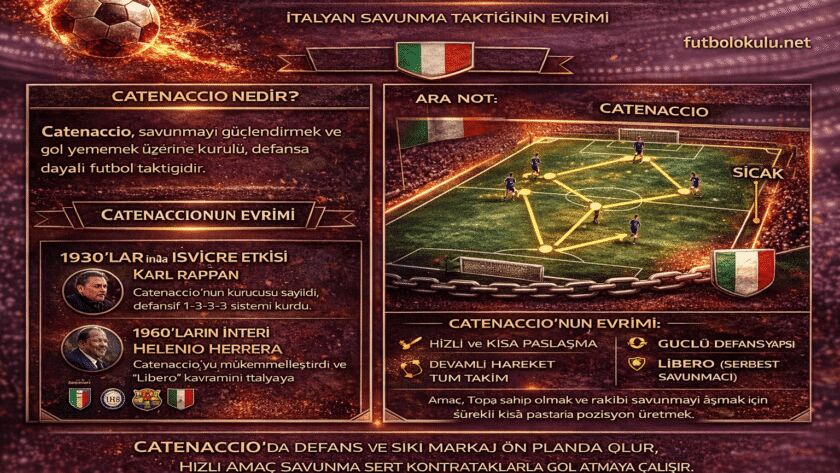 Futbol tarihinde bazı taktik sistemler vardır ki yalnızca bir dizilişi değil, bir oyun felsefesini temsil eder. Bu sistemlerden biri de Catenaccio olarak bilinen savunma odaklı futbol anlayışıdır. Özellikle İtalyan futbolunun sembolü haline gelen bu taktik, disiplinli savunma ve hızlı kontra atak üzerine kuruludur. Peki Catenaccio nedir, nasıl ortaya çıktı ve modern futbolda nasıl evrildi?