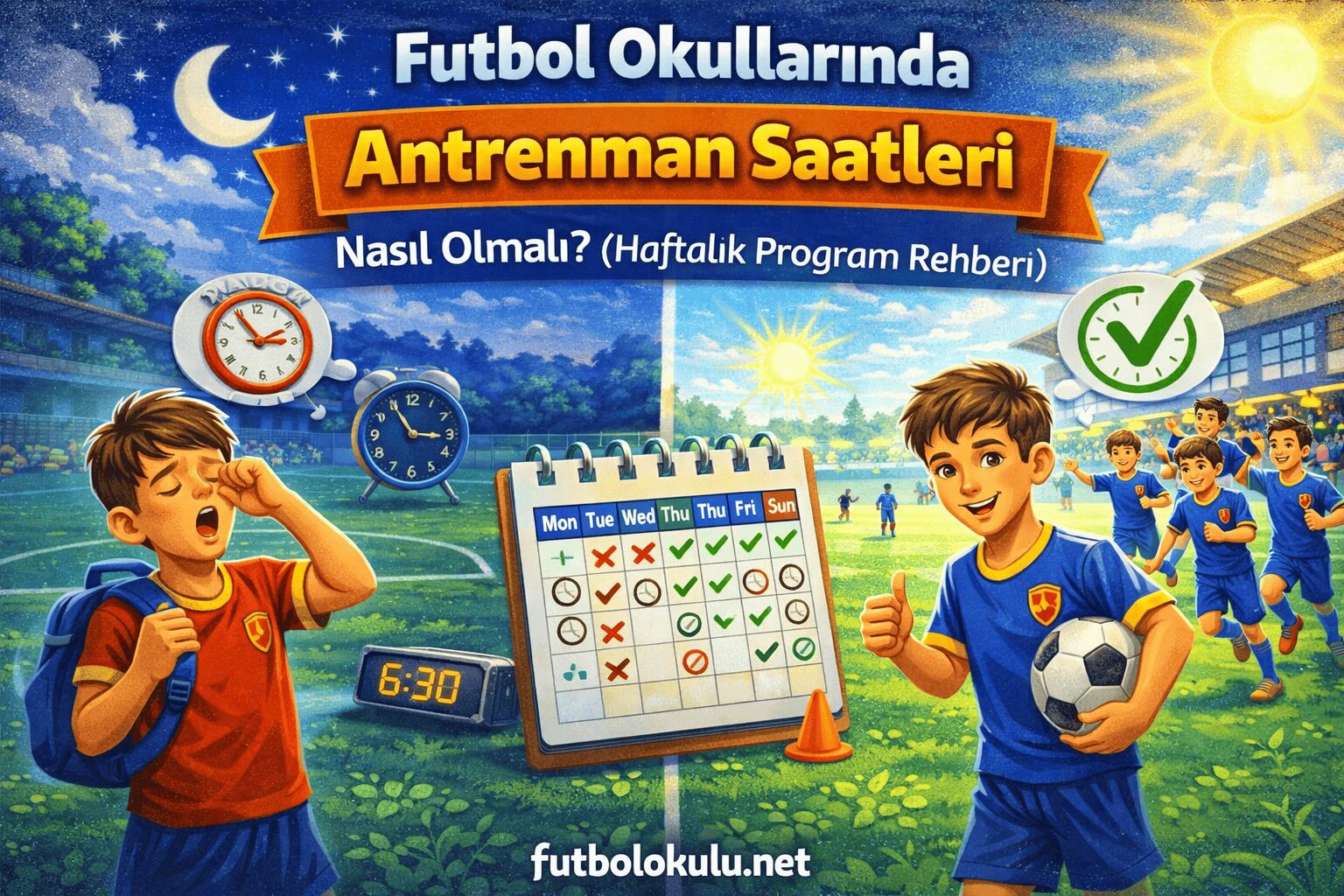 Bu rehberde futbol okullarında ideal antrenman saatleri, yaşa göre sıklık ve örnek haftalık programlar detaylı şekilde anlatılmaktadır.