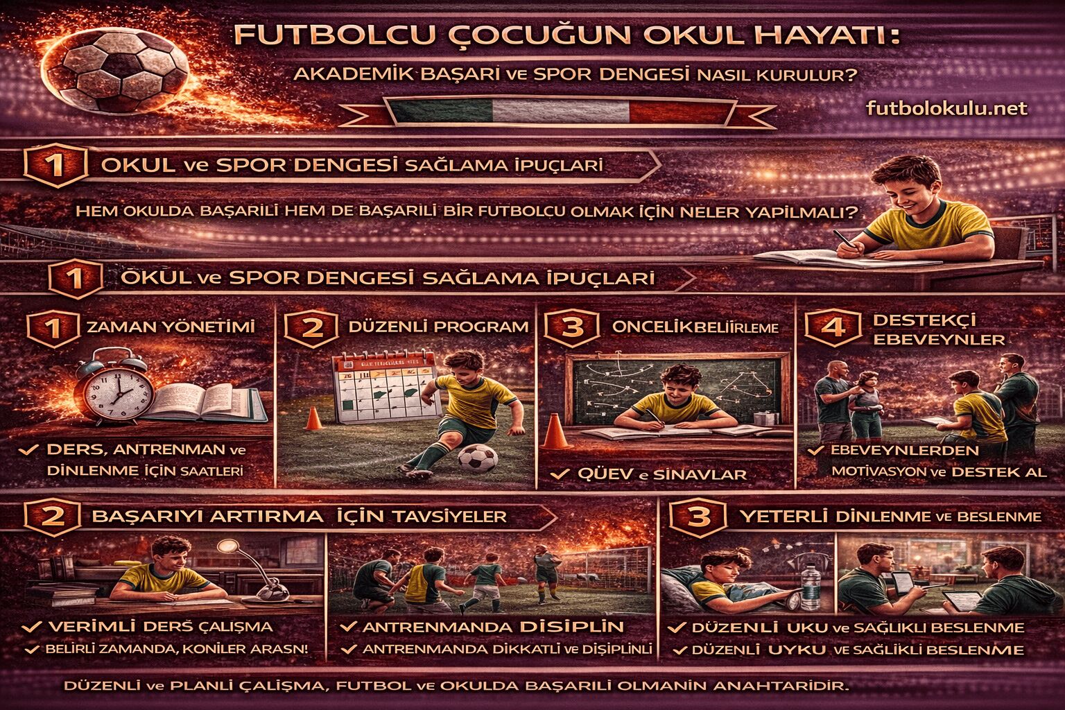 Futbol ile eğitim arasındaki denge doğru kurulduğunda çocuk hem akademik hem sportif gelişim sağlayabilir.