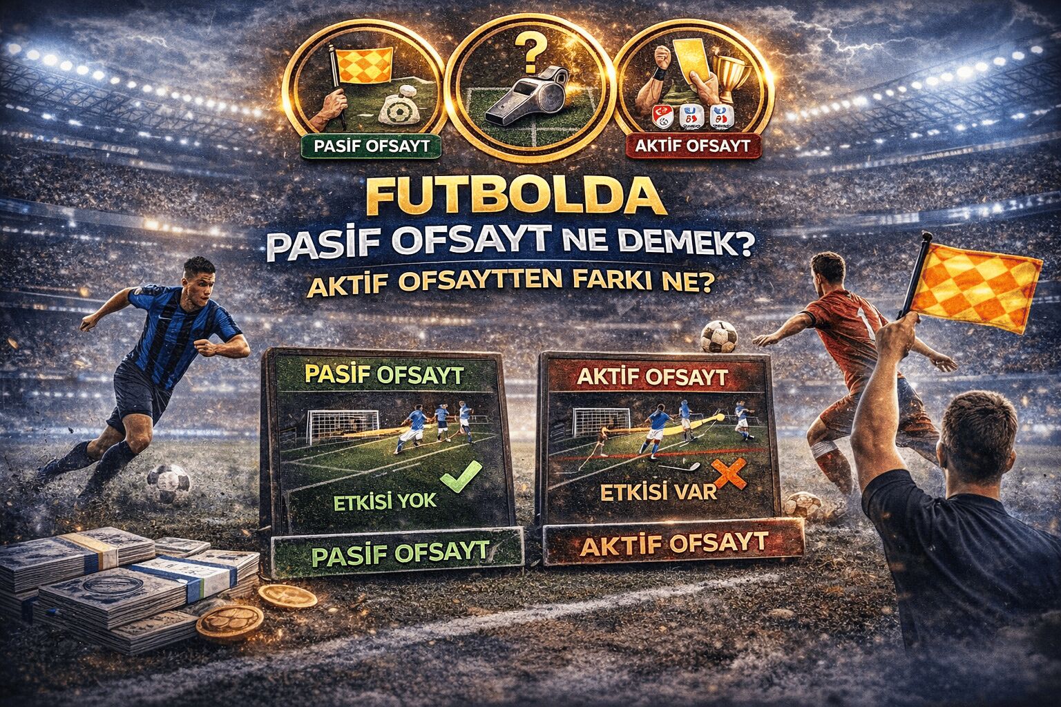 Futbolda en çok tartışılan kuralların başında ofsayt gelir. Ancak ofsayt sadece “önde olmak” demek değildir. Bir oyuncu rakip savunmanın arkasında olabilir ama hakem bayrağı kaldırmaz. İşte burada devreye iki kavram girer: pasif ofsayt ve aktif ofsayt.