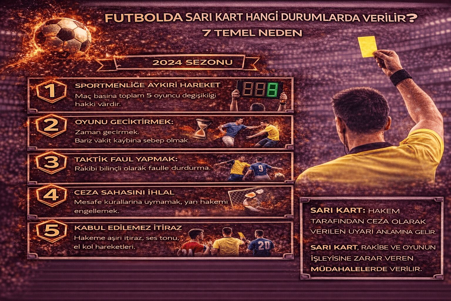 IFAB kurallarına göre sarı kart gerektiren başlıca 7 temel ihlal vardır.