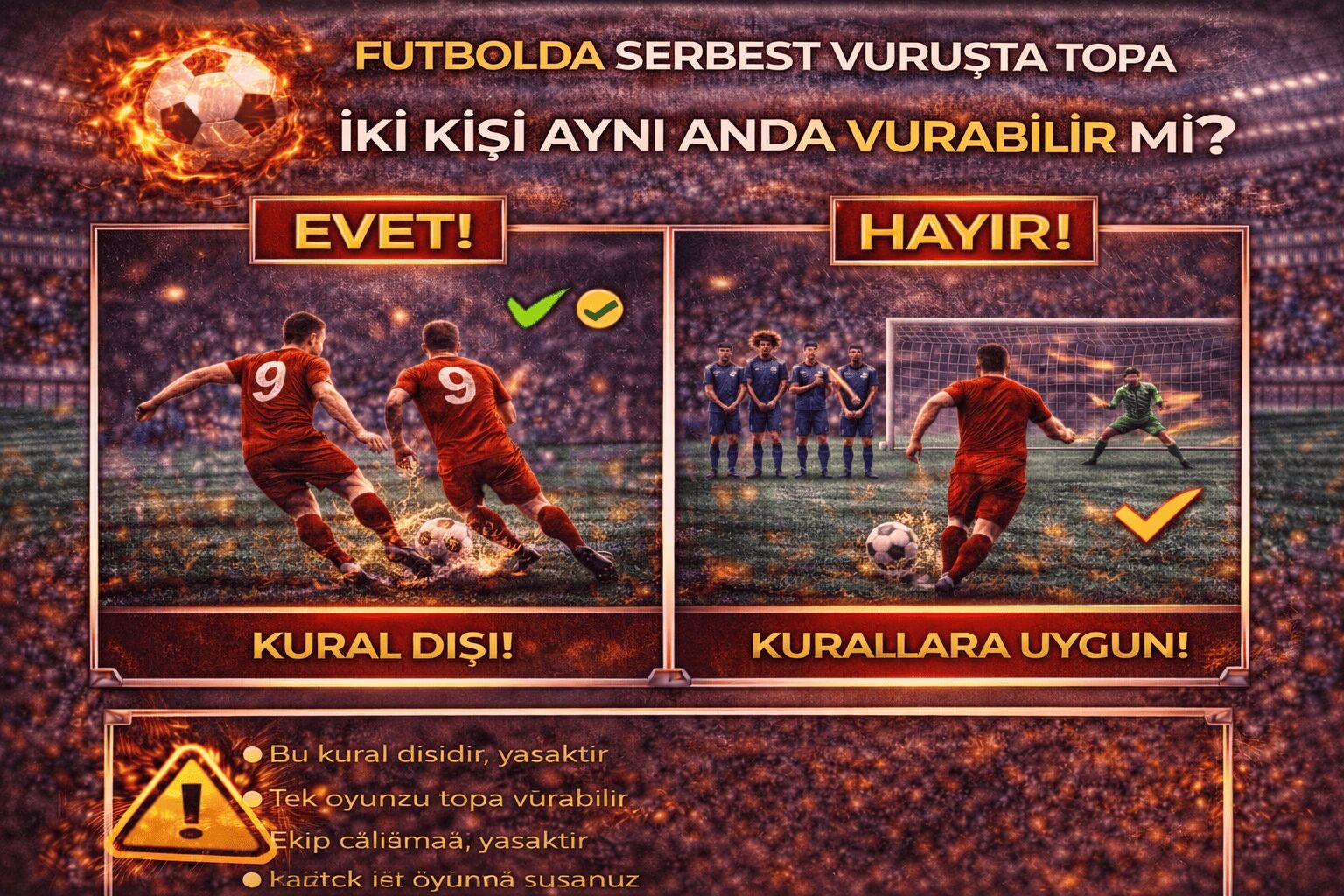 Futbolda serbest vuruşta topa iki oyuncunun aynı anda vurması açık bir kural ihlali değildir. 2026 itibarıyla geçerli IFAB oyun kurallarına göre önemli olan topun sabit konumdan net şekilde hareket etmesidir. Aynı anda iki oyuncunun teması çift dokunuş ihlali sayılmaz. Ancak endirekt serbest vuruşta top başka bir oyuncuya değmeden doğrudan kaleye girerse gol geçersizdir. Hakem topun hareketini ve oyunun akışını dikkate alarak karar verir.