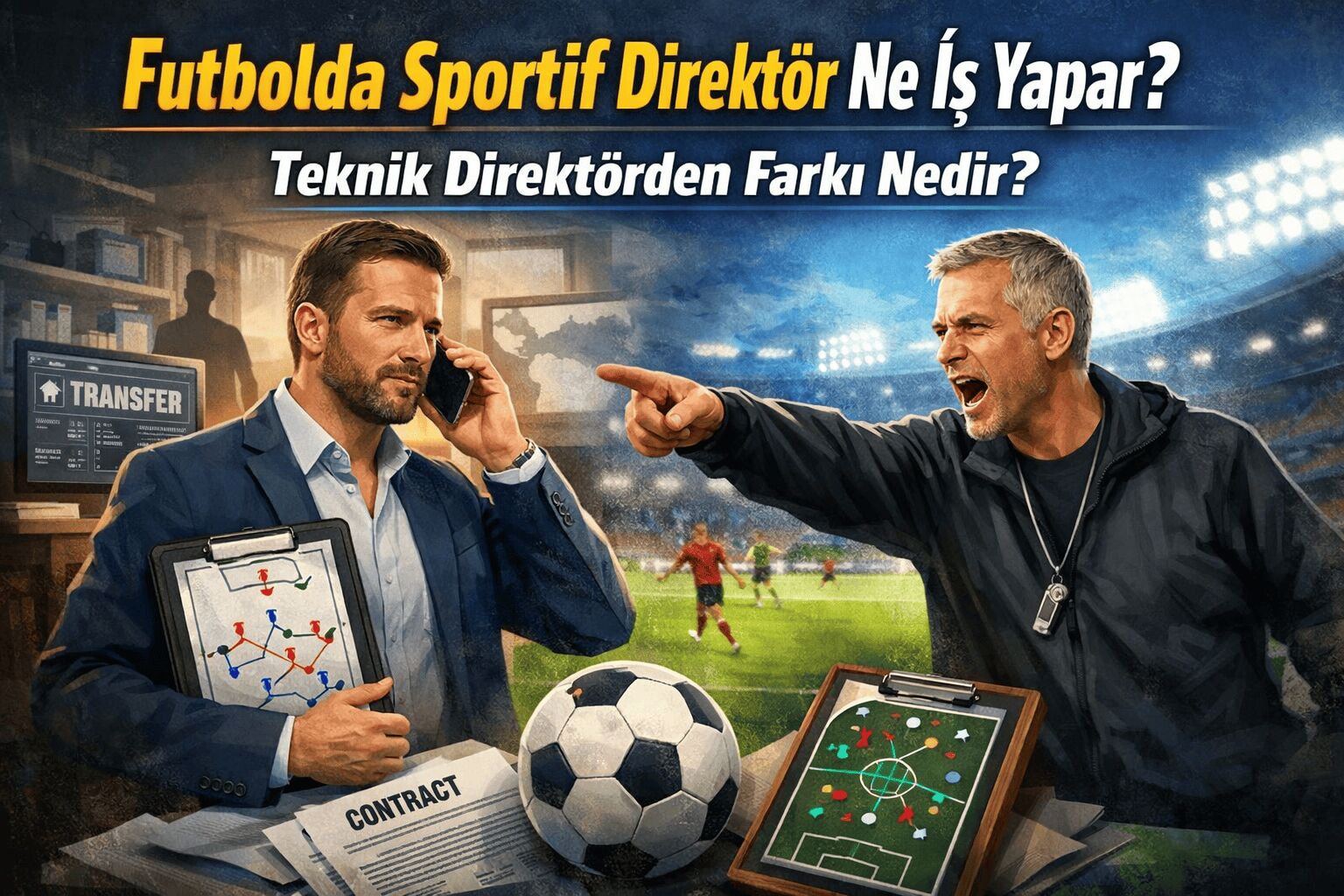 Sportif direktör, modern futbol kulüplerinde transfer politikası, altyapı yönetimi ve uzun vadeli planlamadan sorumlu kritik bir yöneticidir. Teknik direktör ise takımın saha içi performansını yönetir.