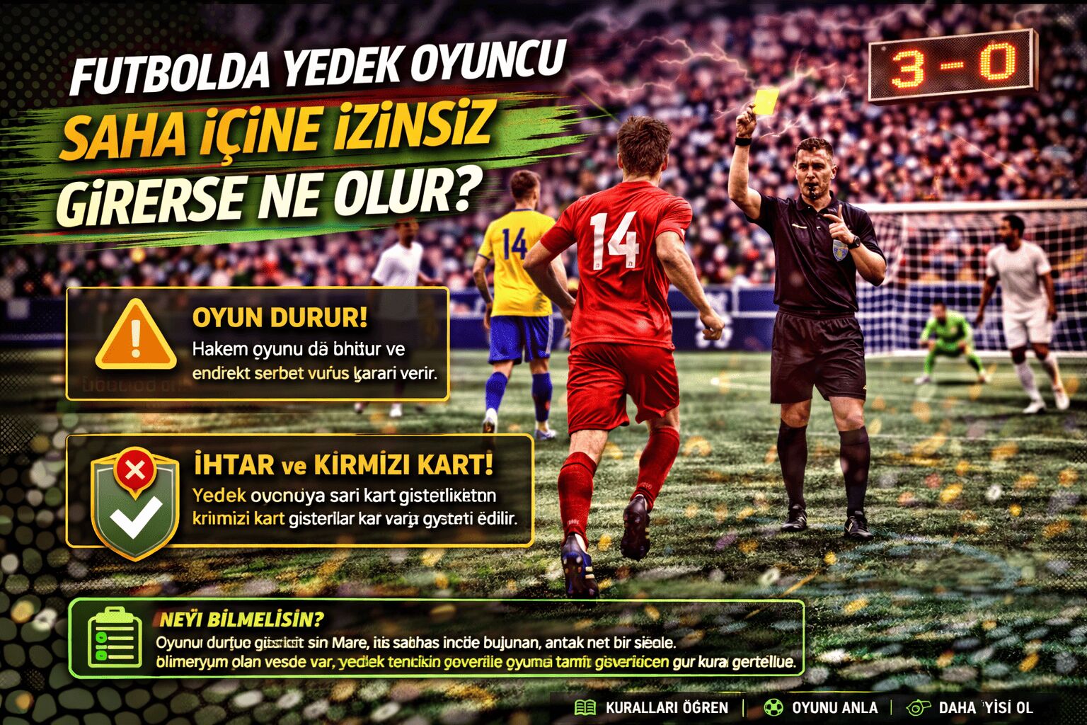Futbol sahasında olması gereken kişi sayısı yalnız taktik değil, adalet meselesidir. Bu yüzden yedek oyuncunun izinsiz girişi de sıradan bir kural hatası değil, oyunun temel dengesine müdahale olarak görülür.