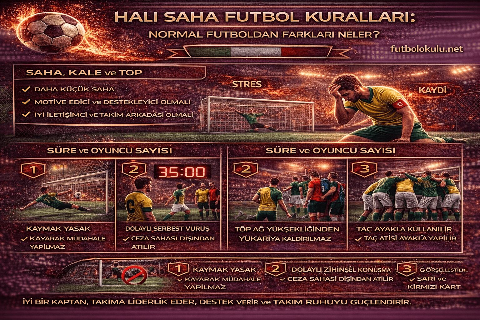 Halı saha futbolunun kurallarını bilmek oyunun daha güvenli ve keyifli oynanmasını sağlar.