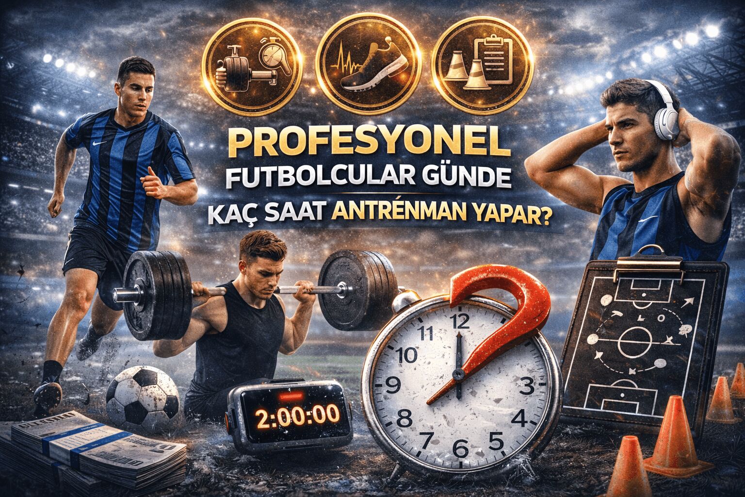 Profesyonel futbolcular günde ortalama 1,5–2 saat saha antrenmanı yapar; toplam kulüp mesaisi ise 3–6 saat arasında değişebilir. Sezon öncesi kamp döneminde bu süre artar, maç haftasında azalır. Kuvvet çalışması, analiz ve rejenerasyon süreci de günlük programın parçasıdır. 2026 itibarıyla modern futbol, yalnızca saha çalışmasından değil; bilimsel performans yönetiminden oluşan yoğun bir profesyonel yaşam gerektirir.